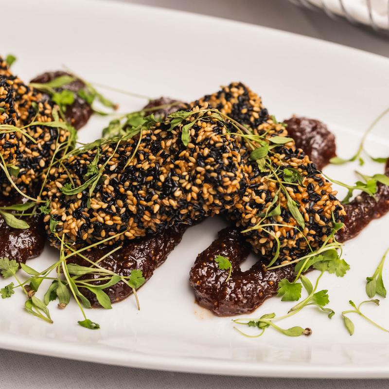 Sesame-crusted feta, dried figs, peppercorn, honey.