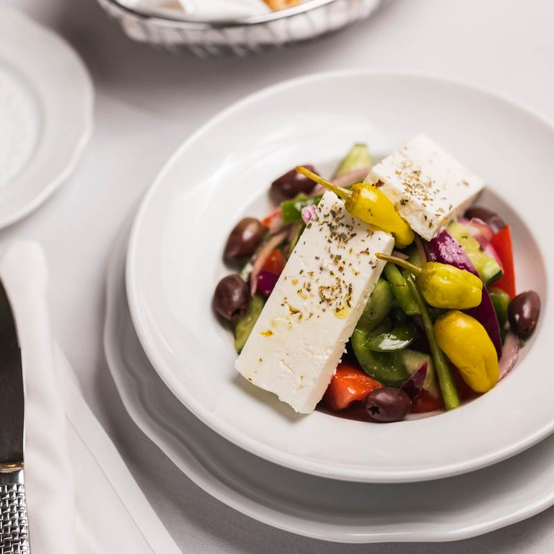 Vine-ripened tomatoes, cucumber, red onions, bell peppers, olives, Arahova feta.